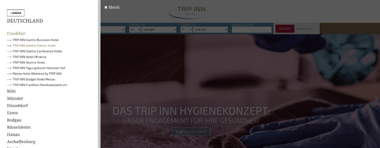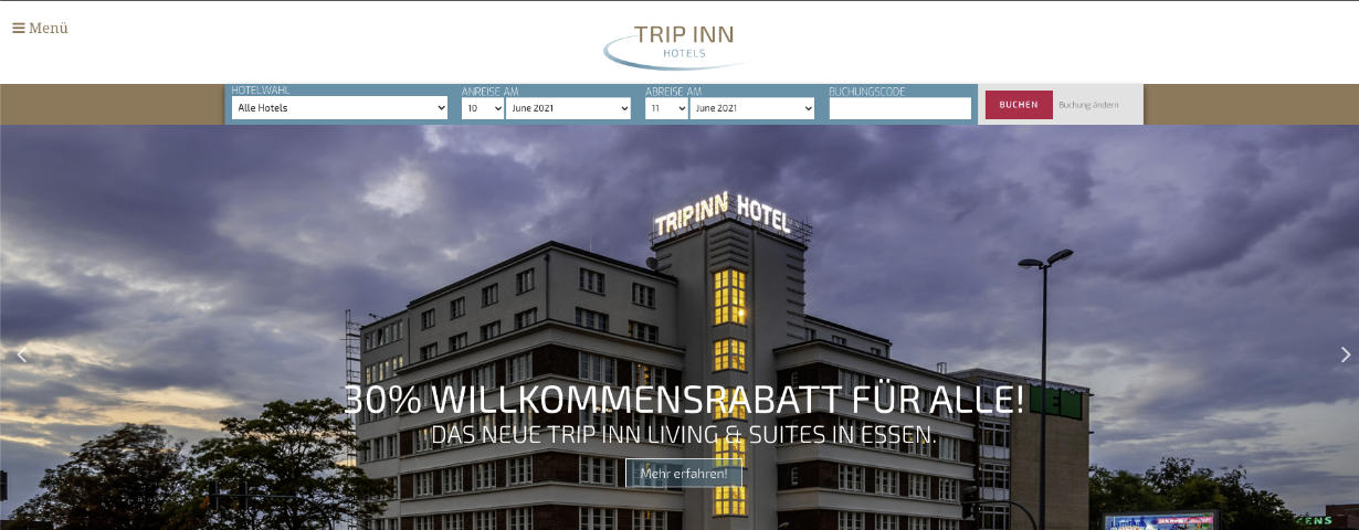 Für die Hotelgruppe TripInn Hotels wurde die bestehende WordPress-Website technisch optimiert und funktional erweitert. Ziel war eine bessere Performance, klarere Benutzerführung und eine zentrale Navigation, mit der Nutzer schnell zwischen allen Hotels der Gruppe wechseln können.